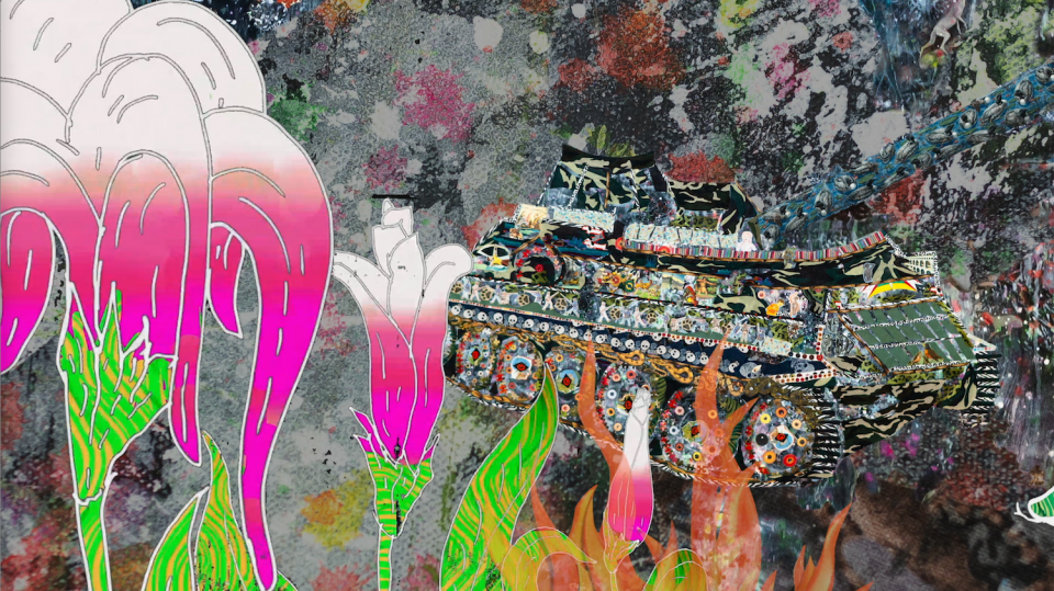 Deze animatie is een aandenken aan alles wat verloren ging in de recente Eaton-brand in Califonië. Colburn verloor haar hele buurt en zoveel levens en natuur. Is de film is een grote geschilderde collage van een Russische tank te zien, maar in deze film is de tank getransformeerd in de Nationale Garde die de door brand verwoeste gemeenschap van Altadena (waar de Eaton-brand huishield) beschermde tegen dieven en plunderaars. Vlinders en fantastische wezens vluchten voor de vlammen alsof ze in een ramp leven die zich in slow-motion afspeelt.